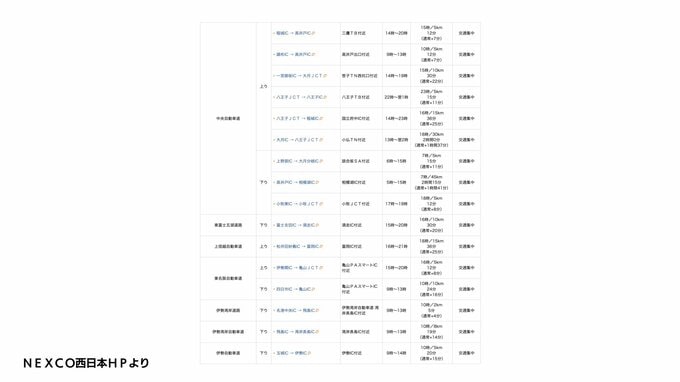 ・(下り線)高井戸IC→相模湖IC、午前7時、45キロ