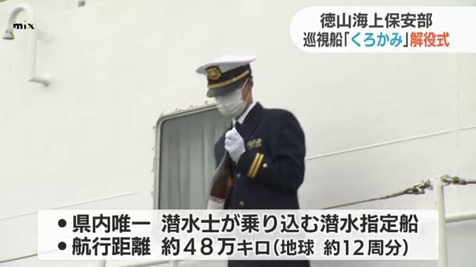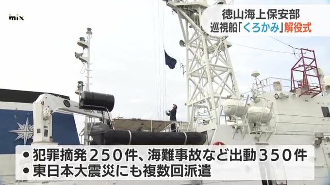 周南市の徳山海上保安部で巡視船くろかみの任務を解く「解役(かいえき)式」がありました。
