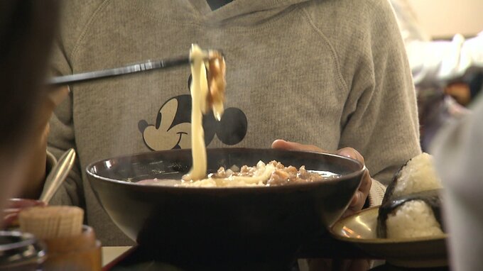 独自の製法で混じりっけのない生麺が出来上がります。うどんに欠かせないネギは、契約農家から仕入れています。名物の一つ、「たなかうどん」には肉とわかめのトッピング。昔、まかないで出されていたメニューで田中さんが考案したそうです。