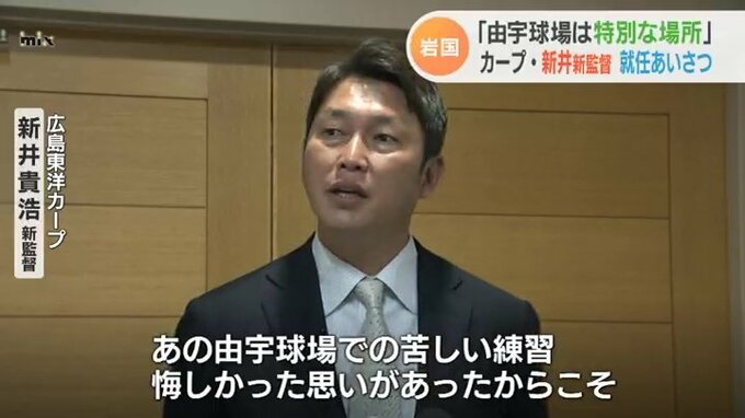「ファンの心を赤く燃えさせるような試合を見せたい」広島東洋カープの新井貴浩新監督が6日、由宇町に練習場のある山口県岩国市を訪れ、就任のあいさつをしました。