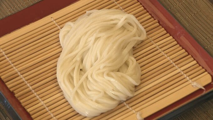 うどんは、細麺でコシが強く、もちもちでつるつるの食感に仕上がったということです。
