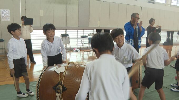 児童たちはかねや太鼓のたたき方も教わり、地元の伝統の奥深さを感じているようでした。