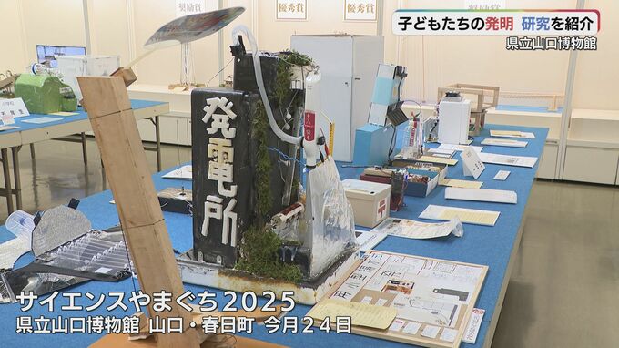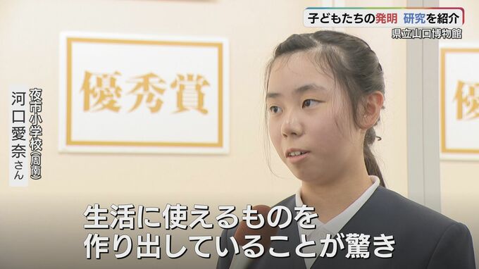 「サイエンスやまぐち」は子どもたちの自然や科学への関心を育てようと毎年、開かれています。児童・生徒が応募したおよそ240点が並んでいて、優秀賞に選ばれた8人が表彰されました。