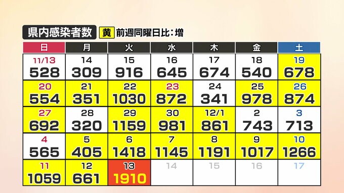 山口県内で13日、新たに1910人が新型コロナウイルスに感染したことが分かりました。また5人の死亡が発表され、死者の累計は450人になりました。