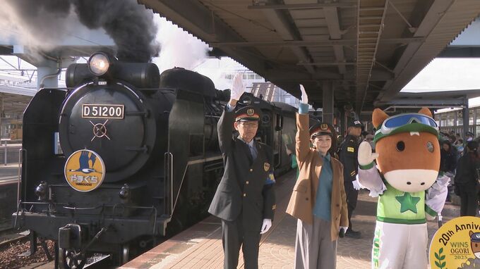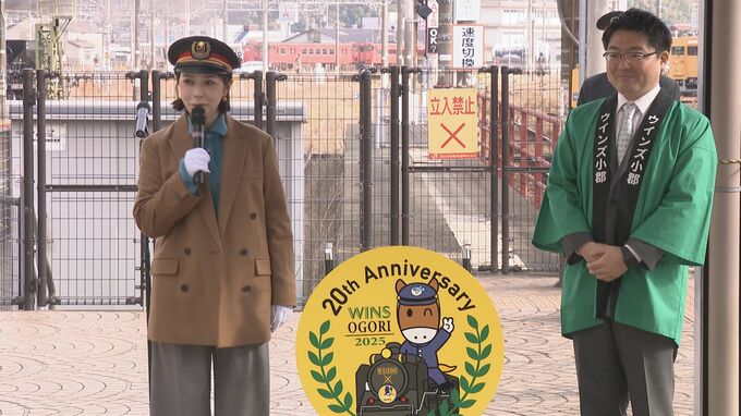 場外馬券発売所JRAウインズ小郡の開設20周年を記念して24日、SLやまぐち号とコラボレーションしたイベントが開かれました。