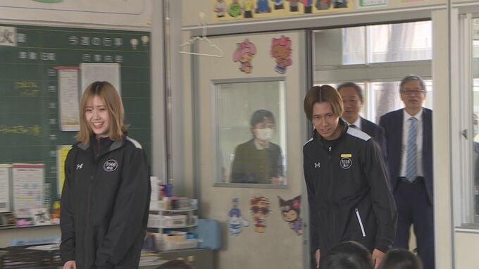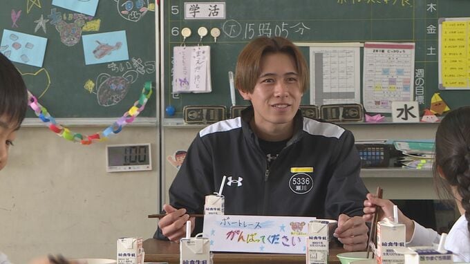 熊野小学校では2年生31人が、現役のボートレーサー2人と一緒に給食を食べました。