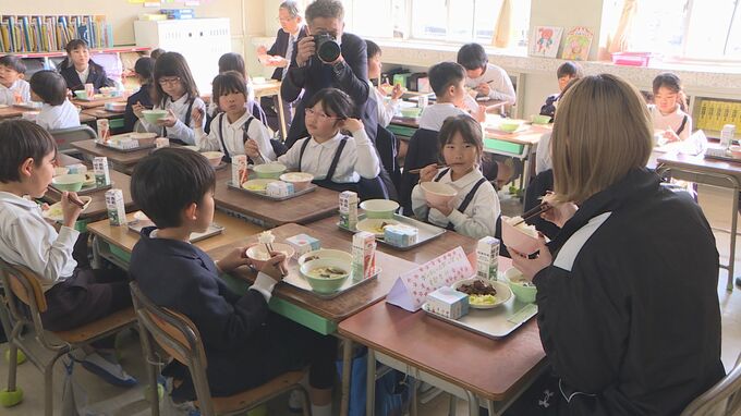 山口県下関市内の小中学校で25日、「ボートレース給食の日」として特別なメニューが提供されました。