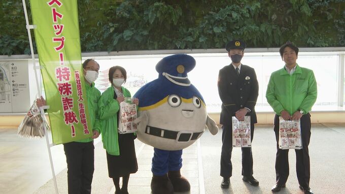 年末年始を前に10日、山口市で生命保険協会山口県協会がチラシを配ってうそ電話詐欺への注意を呼びかけました。