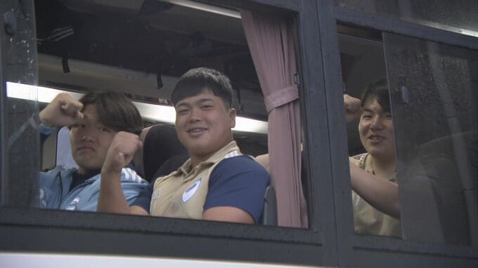 高川学園ラグビー部の部員47人は、午前7時半ごろに花園へ向けて出発しました。