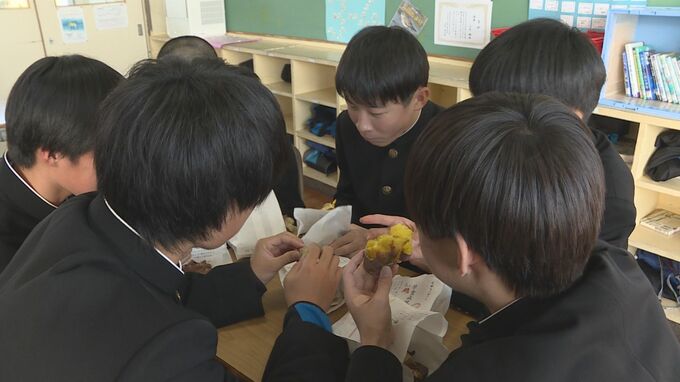 山口市の阿知須中学校の3年生が頬張るのは、アツアツの「焼き芋」です。使われたのは、地域で採れた「シルクスイート」。しっとりとした舌触りと濃厚な甘さが特徴です。