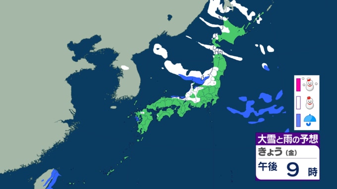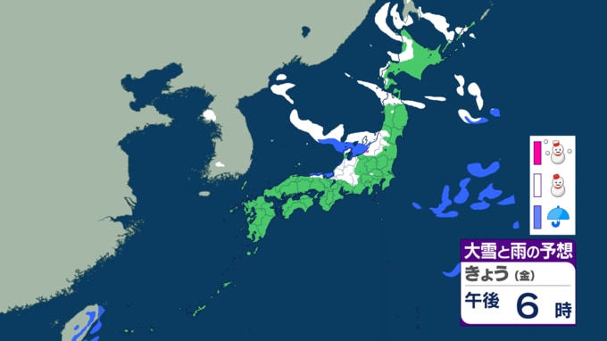 【大雪情報】25日にかけて大雪 北陸で最大80センチ 東北・東海ではで70センチ予想 全国の3時間ごとの雪のシミュレーション(気象庁) 2026年1月23日(金) 14:37 国内 きょう(23日)の雨と雪のシミュレーション