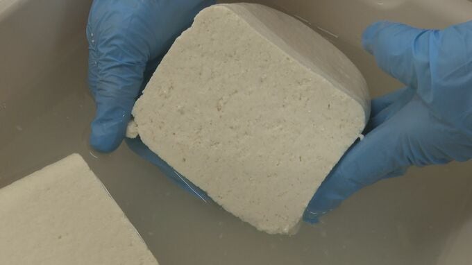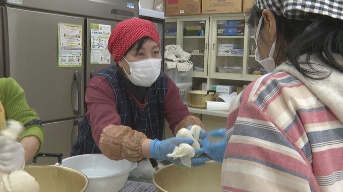 一時、途絶えかけた山口県萩市の名産「ささなみ豆腐」作りに23日、家族連れなどが挑戦しました。