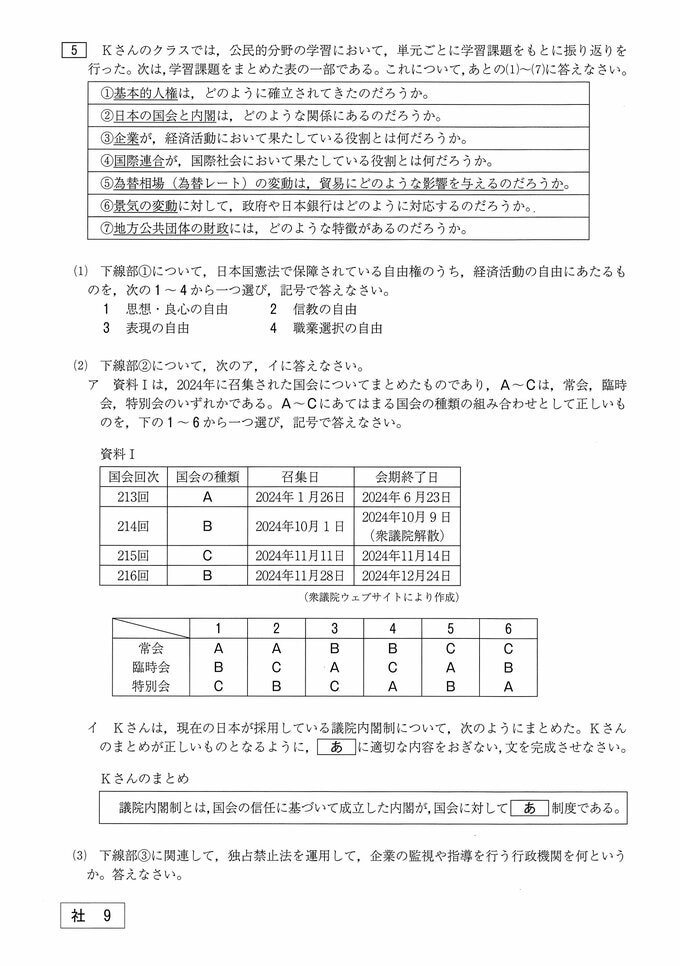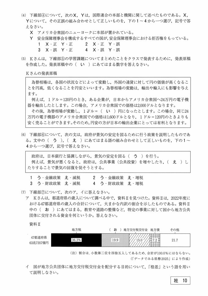 山口県公立高校入試『社会』試験問題・解答(令和8年度・2026年度)