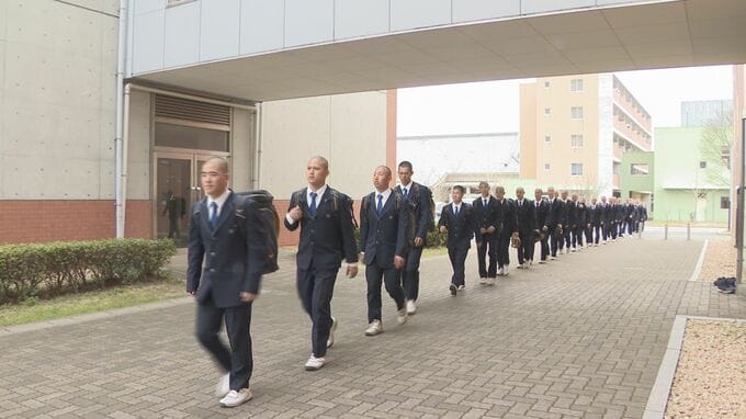 3月19日開幕の春のセンバツに出場する高川学園野球部(山口県防府市)が9日、甲子園に向けて出発しました。