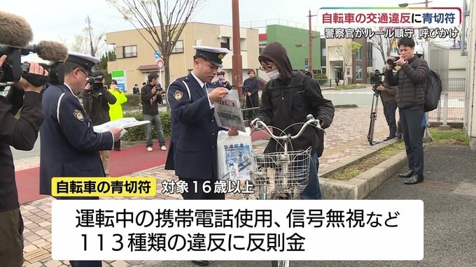 1日に導入された自転車の「青切符」は、16歳以上を対象に運転中の携帯電話の使用や信号無視、一時不停止など113種類の違反に反則金を課すものです。