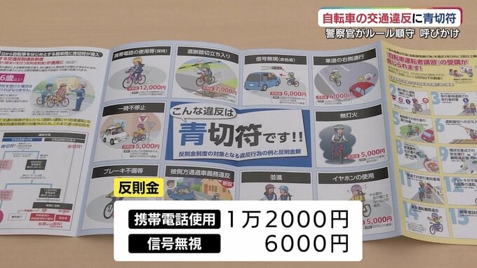 反則金は携帯電話の使用が1万2000円、信号無視が6000円などと定められていて、違反の取り締まりで事故を防ぐねらいがあります。