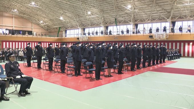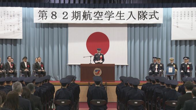 戦闘機などのパイロットを養成する航空自衛隊防府北基地(山口県防府市)に69人が入隊しました。