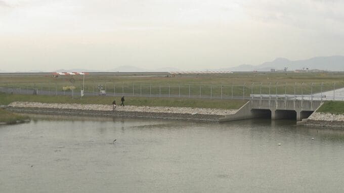 環境への有害性が指摘される有機フッ素化合物、PFASを調べている市民団体が、山口県岩国市の岩国基地に近接する遊水池で水を採取しました。