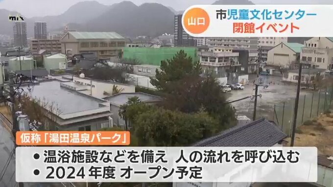 センターの跡地には「多世代交流・健康増進拠点施設」、仮称「湯田温泉パーク」が建設されます。温浴施設などを備え、人の流れを呼び込む拠点としていて、2024年度にオープンする予定です。