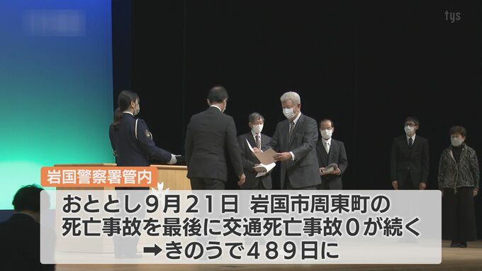 岩国署管内ではおととし2021年9月21日に岩国市周東町で死亡事故が発生したのを最後に交通死亡事故ゼロが続き、きのうで489日となりました。