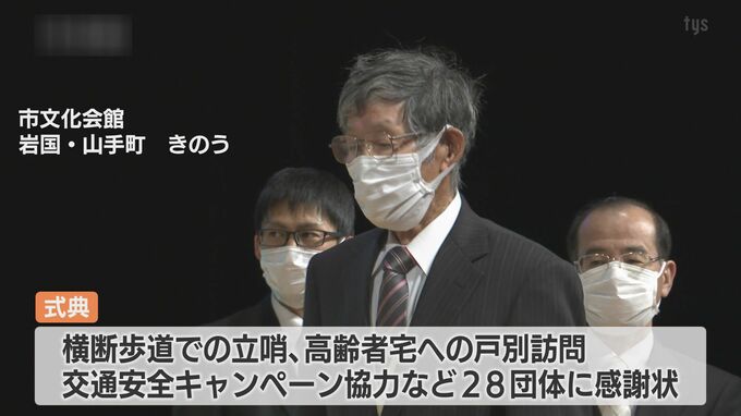 式典では、横断歩道での立哨や高齢者宅への戸別訪問、交通安全キャンペーンなどに協力した28団体に感謝状が贈られました。