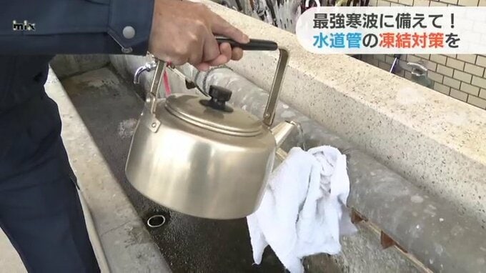 水道が出ない→熱湯かけるのは絶対ダメ! タオルを置いて、ゆっくりぬるま湯を 水道局に聞いた最強寒波・水道管凍結への備えと対策 2023年1月24日(火) 19:53 国内 山口市水道局によりますと、気温が0度以下になると水道管などが凍りやすくなり、氷点下4度以下で破損のおそれが高くなるそうです。これから簡単にできる凍結防止の方法を教えてもらいました。まず、外にあるメータ…