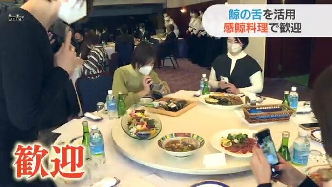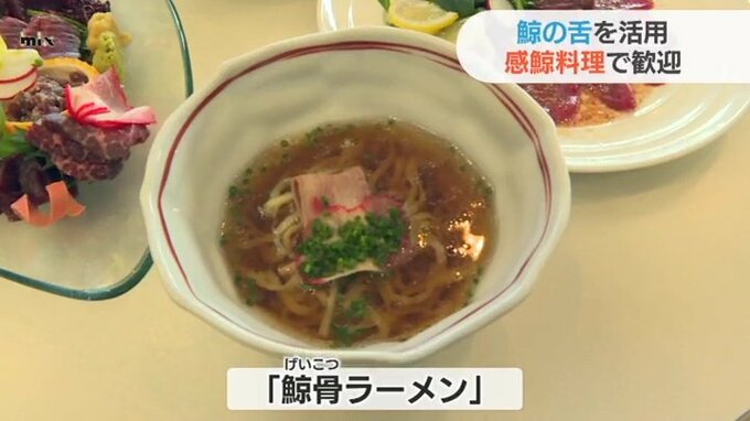美味しさを知って感動してもらいたい、また「歓迎」の思いも込められています。試食では、鯨骨(げいこつ)ラーメンが好評でした。