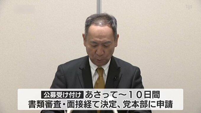 自民党県連は午後、選挙対策委員会を開きました。岸氏の辞職に伴う衆議院山口2区の補欠選挙の対応を協議し、公認候補者を公募で選ぶことを決めました。公募の受付期間は2月6日から10日間で、書類審査や面接を経て2月下旬には決定し、党本部に申請する流れです。