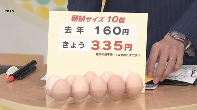 Mサイズの卵1パック、1年前は160円で売られていたのですが、いまは335円にまで値上がりしているんです。