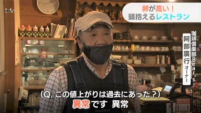 「異常です。異常。卵の値上がりもそうですし、人件費もありますし、電気代、