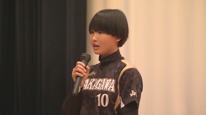 岩本唯花・ソフトボール部キャプテン:「全力プレーでいつも支えて下さる方々に、結果で恩返しできるよう頑張るので応援よろしくお願いします」