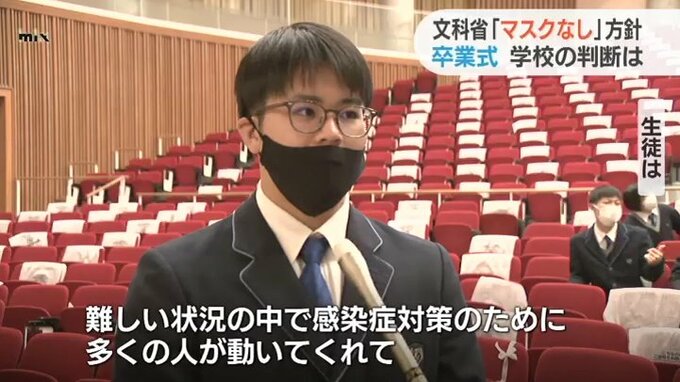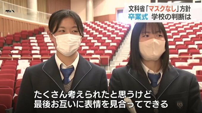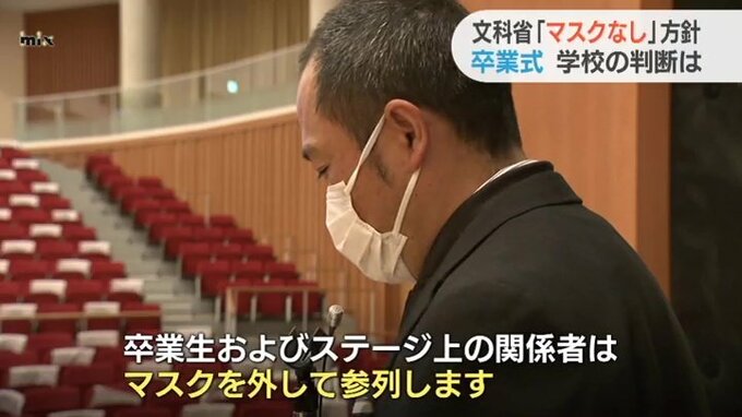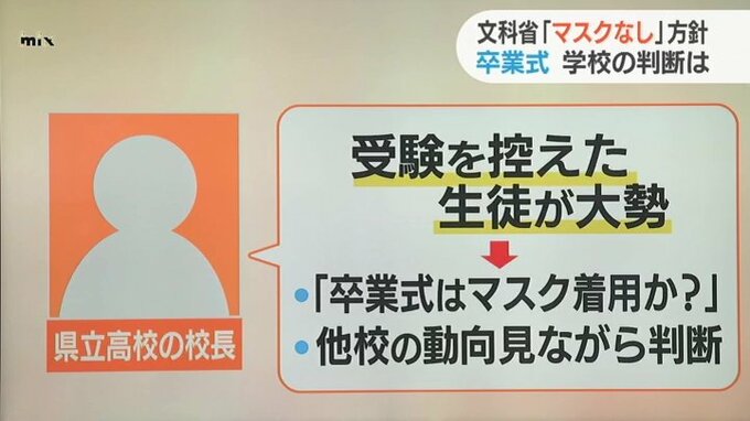 tysが取材した県立高校の校長は「受験を控えた生徒が大勢いる」として不安要素を取り除くためにも「卒業式はマスク着用になるのでは」と漏らしました。
