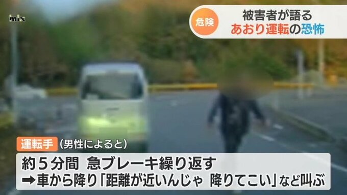 男性によると、運転手はおよそ5分間急ブレーキを繰り返したあと、車から降りてきて「距離が近いんじゃ。降りてこい」などと叫んだといいます。