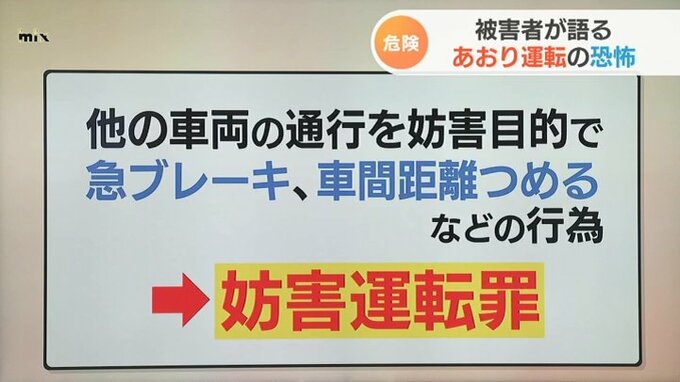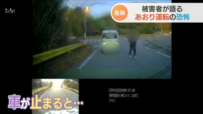 急ブレーキを何度も繰り返し、運転手が車から降りて向かってくる映像が写っています。こういった、わざと車両の運転を妨害する「あおり運転」は重大な事故につながる危険もあります。