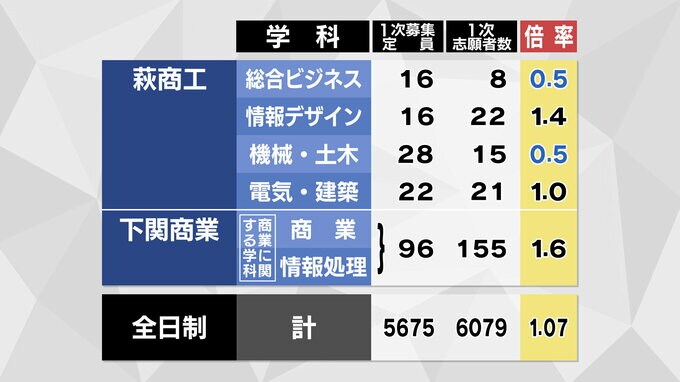 【画像に全校掲載】山口県公立高校入試2023 志願倍率発表 最高は田布施農工生物生産学科2.3倍、全日制平均は1.07倍
