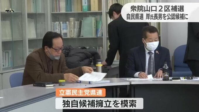 自民党県連の常任総務会が開かれ、衆議院山口2区の補欠選挙に前防衛大臣・岸信夫さんの長男・信千世さんを公認候補として推薦することが決まりました。
