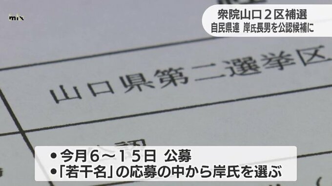 前防衛大臣・岸信夫さんの辞職に伴い行われる衆議院山口2区の補欠選挙を巡り、自民党山口県連は、岸さんの長男、信千世さん(31)を公認候補として推薦することを決めました。