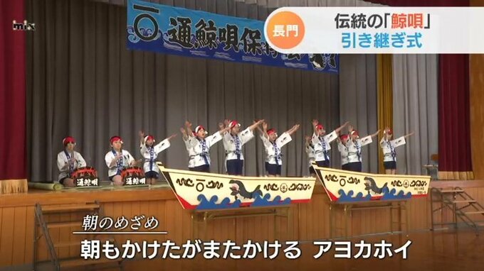 かつて古式捕鯨が盛んだった山口県長門市で、伝統の「鯨唄」の引き継ぎ式がありました。市内の通小学校では、地元に伝わる「鯨唄」を継承しています。