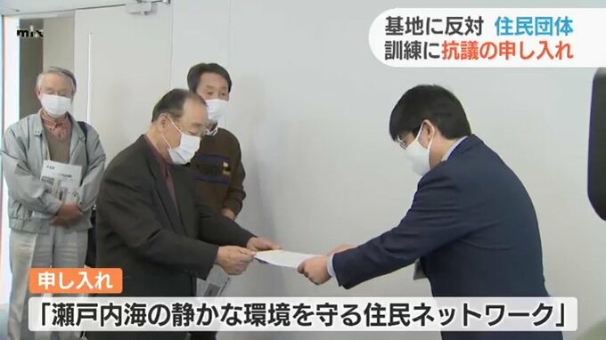 海上自衛隊とアメリカ海軍が広島湾では初めてとなる共同訓練を行ったことについて、岩国基地に反対の立場の市民団体は岩国市に抗議の申し入れをしました。