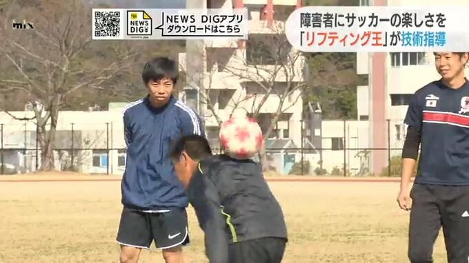すべての人にサッカーの楽しさを知ってもらおうと、「リフティング王」が障害がある人にサッカーの技術を教えました。