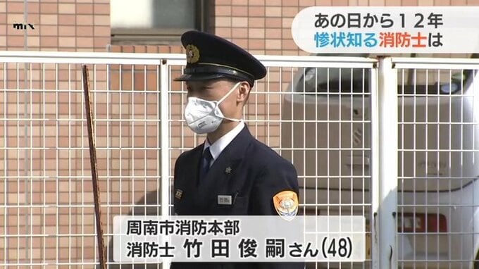 周南市消防本部の消防士・竹田俊嗣さん(48)です。未曽有の大震災が東日本を襲った12年前、消防車で被災地に向かいました。