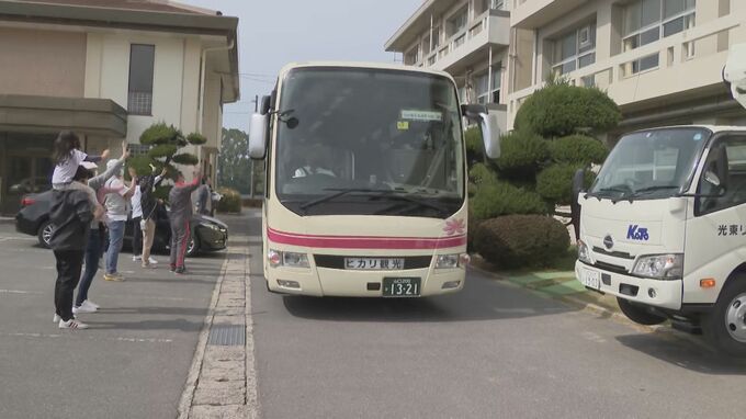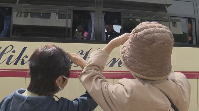出発を前に、学校関係者や地域の人が見送りに駆けつけました。
