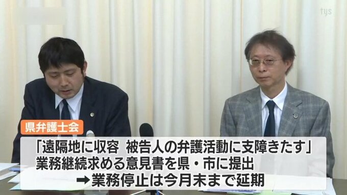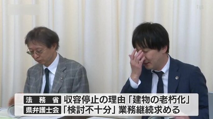 県弁護士会は遠隔地に収容されることで被告人の社会復帰や弁護人の弁護活動に支障をきたすとして、業務継続を求める意見書を県や市に提出し、業務の停止は今月末まで延期されています。法務省は収容停止の理由を建物の老朽化としていますが、県弁護士会は「検討が不十分」として業務の継続を求めました。