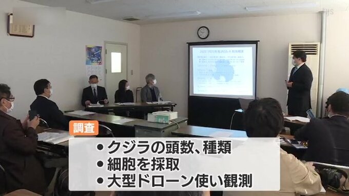 目視による頭数や種類の調査、細胞を採取する調査、大型のドローンを使った観測などが行われました。