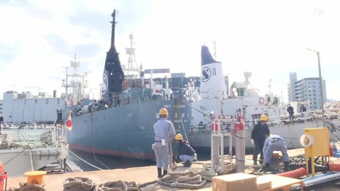 南極海でクジラの調査をした調査船が下関に帰港しました。