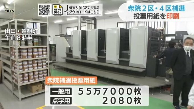4月に行われる衆議院山口2区と4区のダブル補選に向け、山口市で投票用紙の印刷が行われました。