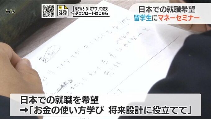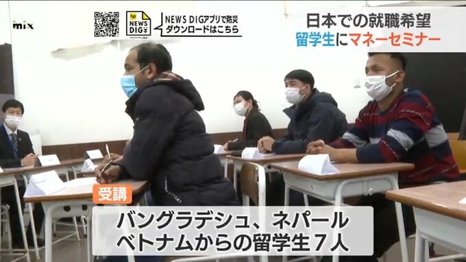 7人は、今月卒業し、日本での就職を希望していてお金の使い方を学んで将来設計に役立ててもらおうと開かれました。