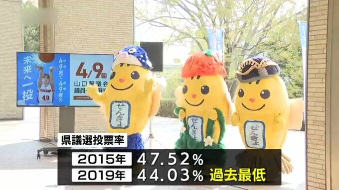 山口県議選の投票率は2015年から50パーセントを下回り、2019年は44.03パーセントで過去最低です。3月30日を皮切りに、4月8日まで県内各地で啓発を行います。