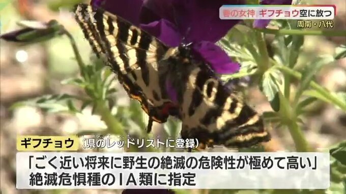 山口県のレッドリストに登録されている貴重な個体ギフチョウを小学生が育てて空に放しました。