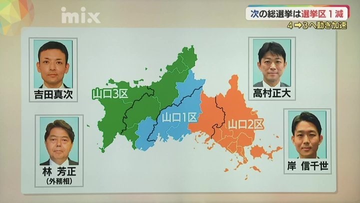 この現職4人で3つの議席を巡り、候補者調整が進められることになります。注目されるのは3区の林さんの動向。出身地の下関市を含む新3区に立つとの見方がある一方で、今の拠点である宇部市がある新1区となる可能性もあります。